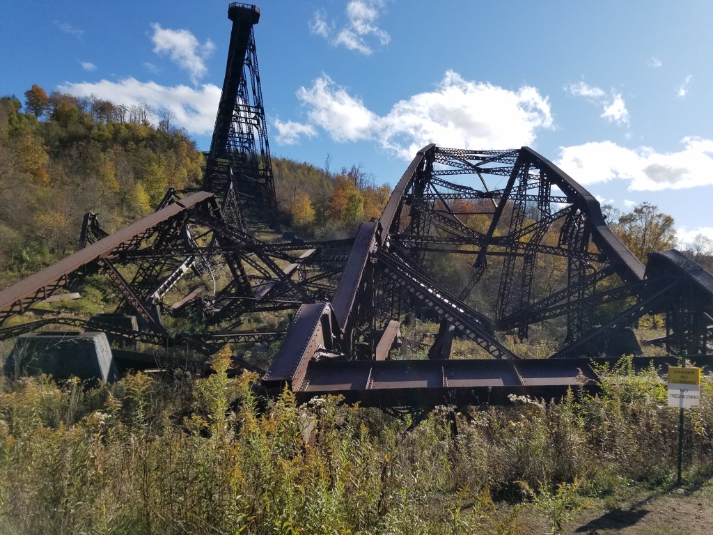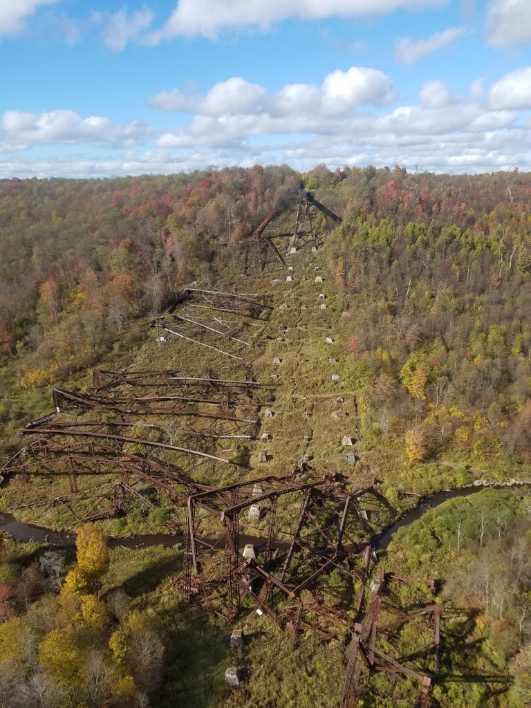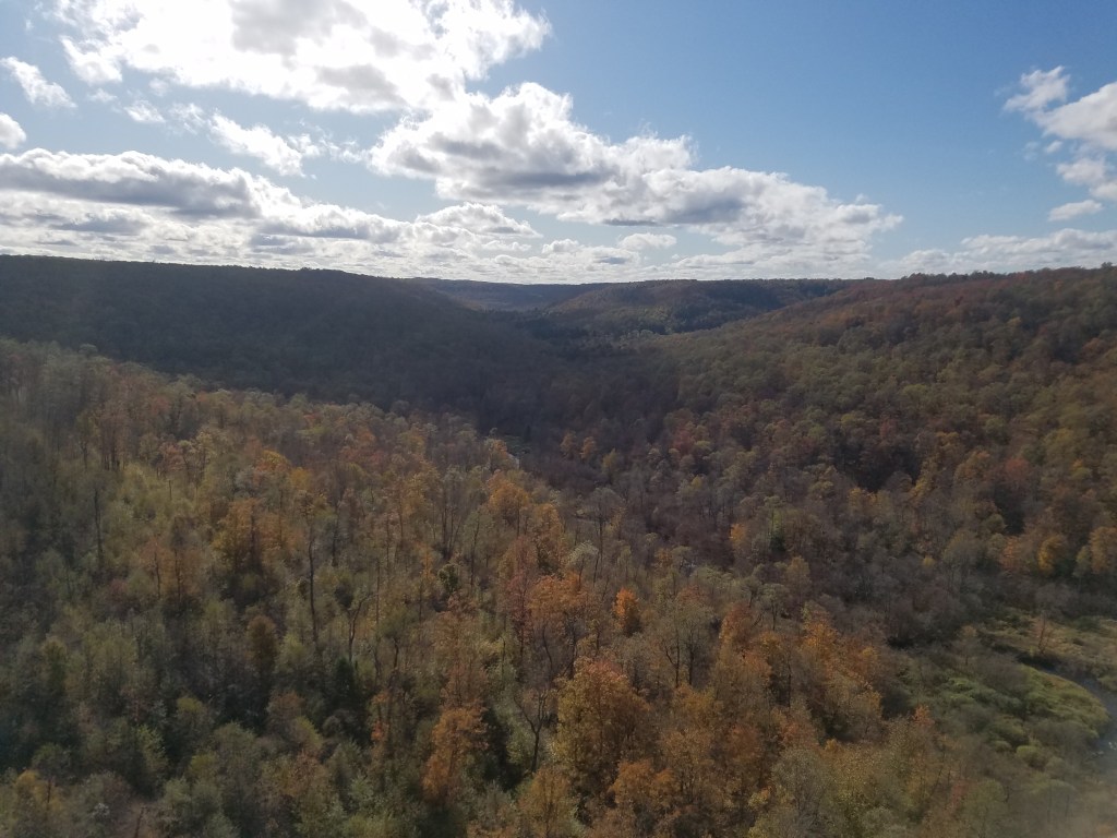 Before going on this trip I had researched a few different hikes, and there is really no shortage of beautiful views at Allegheny, but once we got there we had very little motivation to do much more than just sit in the campground and make a few trips in to town for supplies. We did however visit the Kinzua bridge which used to be a railway bridge until it was hit by a F1 tornado 2003. It was converted into a sky walk in 2011 where you can walk out about a third of the length of the bridge and look out at the rest of the destroyed bridge in the valley.